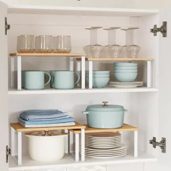 Stackable & Expandable Kitchen Shelf Organizers, Set of 4 - Metal & Wood